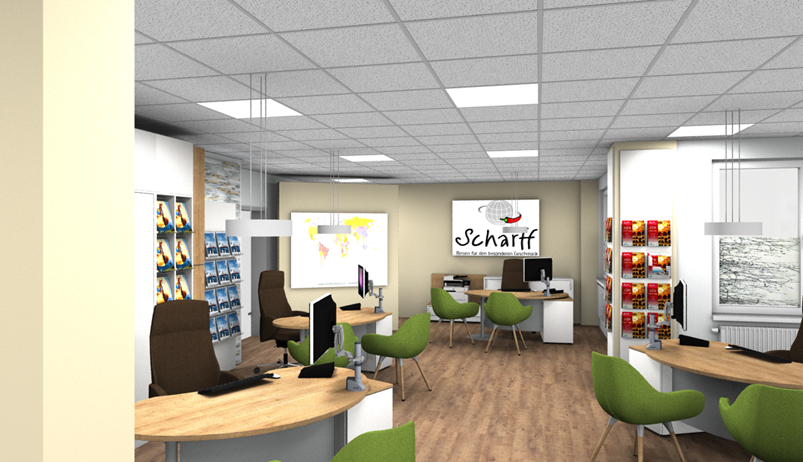 Vom einfachen Grundriss über 2D Ansichten bis hin zur photorealen Darstellung , Videoanimation und 360° Panorama. Wir gestalten Ihre Planung so dass Sie sich ein Bild von Ihrer Einrichtung machen können.