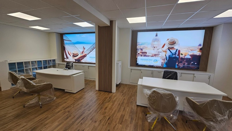 Neueröffnung bald . Bilder vom fertigen Büro folgen .