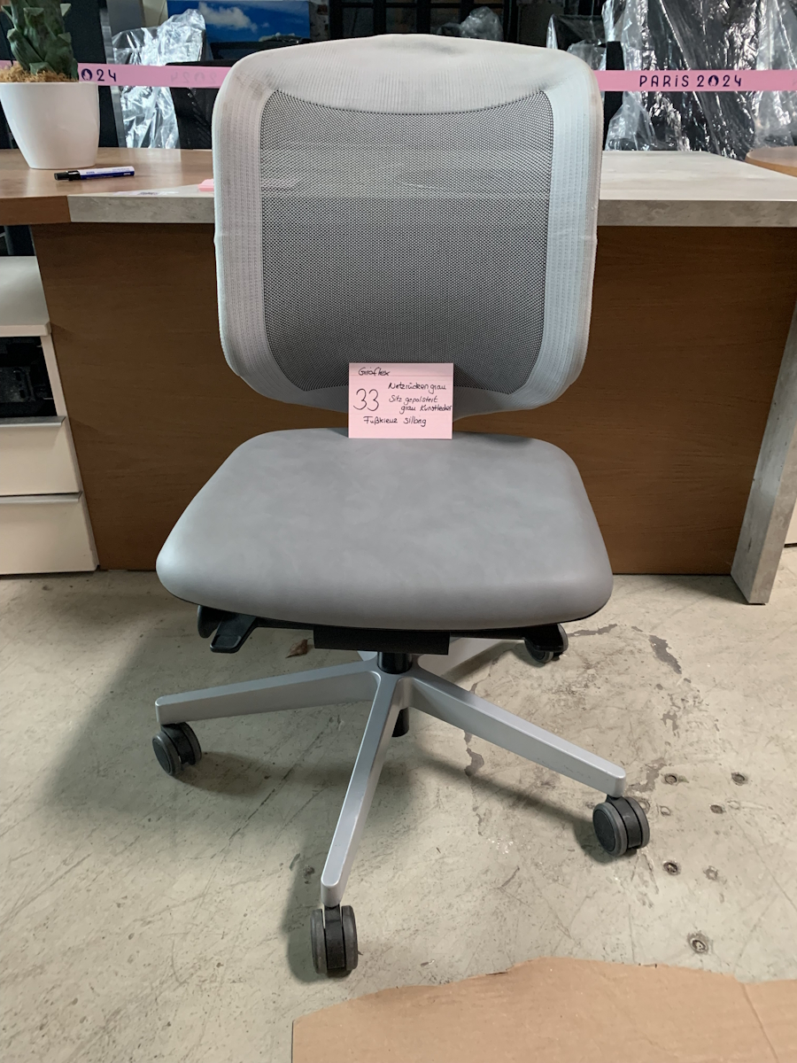 Netzrücken in Stoff grau Sitz gepolstert Kunstleder grau