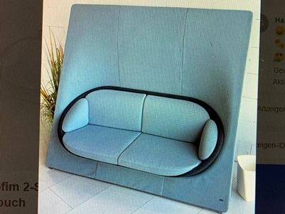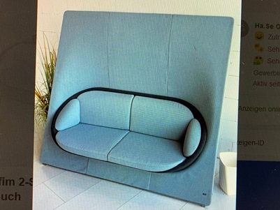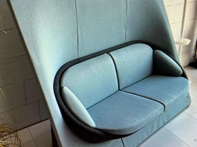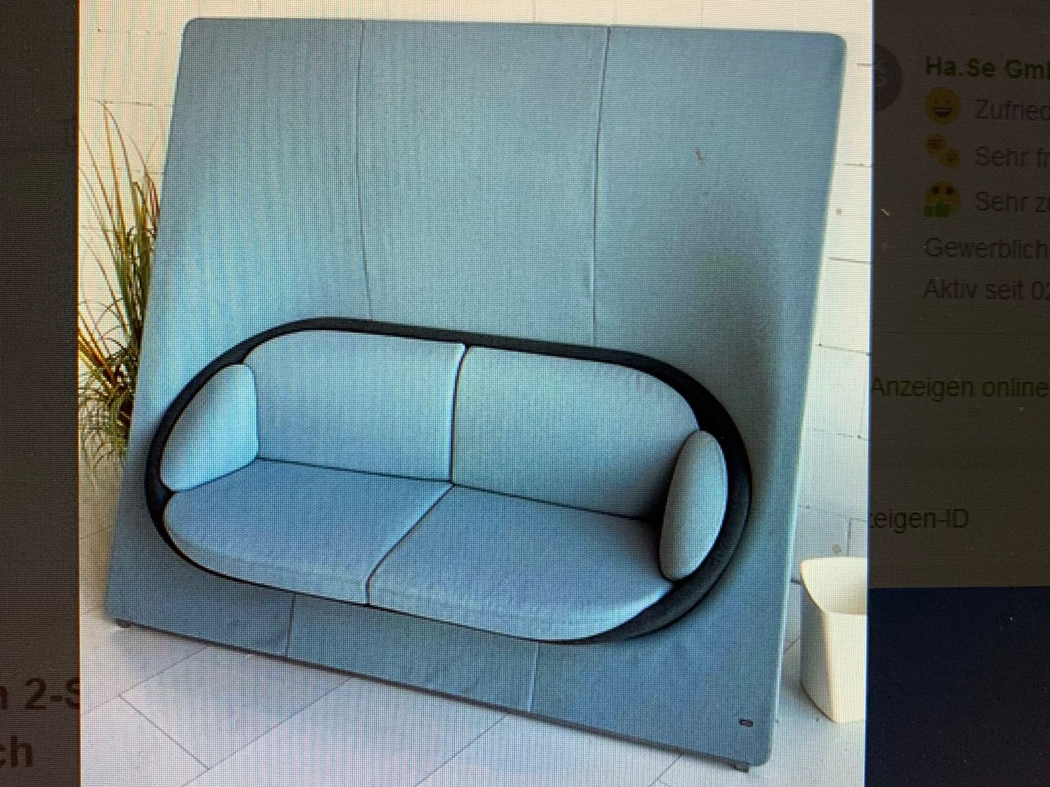Wyspa ist ein neuer Möbeltypus, bei dem bequeme Polstermöbel mit visuell und akustisch abschirmenden Wänden zu einer prägnanten Einheit verschmelzen. Die Lounge ist hier erhältlich als Doppelsitzer. ( Einzelstück )