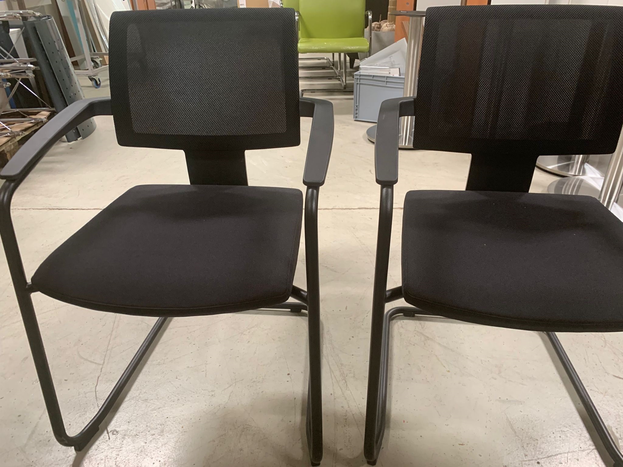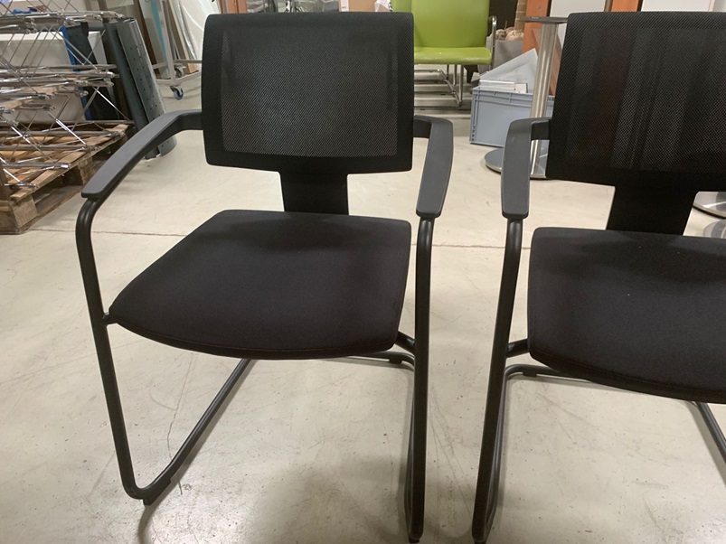 Besucher stuhl mit schwarzem Bezugsstoff und Netz rücken.