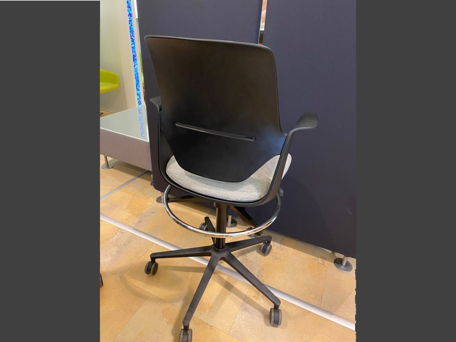 Drehstuhl mit Theken Sitzkranz für erhöhtes Sitzen an Flughafencountern oder ähnlich…..