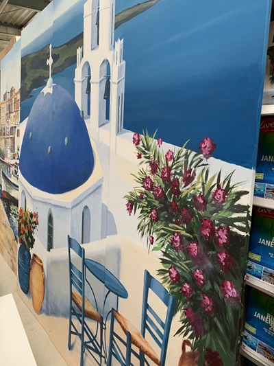 3 teiliges Acrylbild eines Bühnenmalers für Luthe Ladenbau auf Holzrahmen mit Leine bespannt .