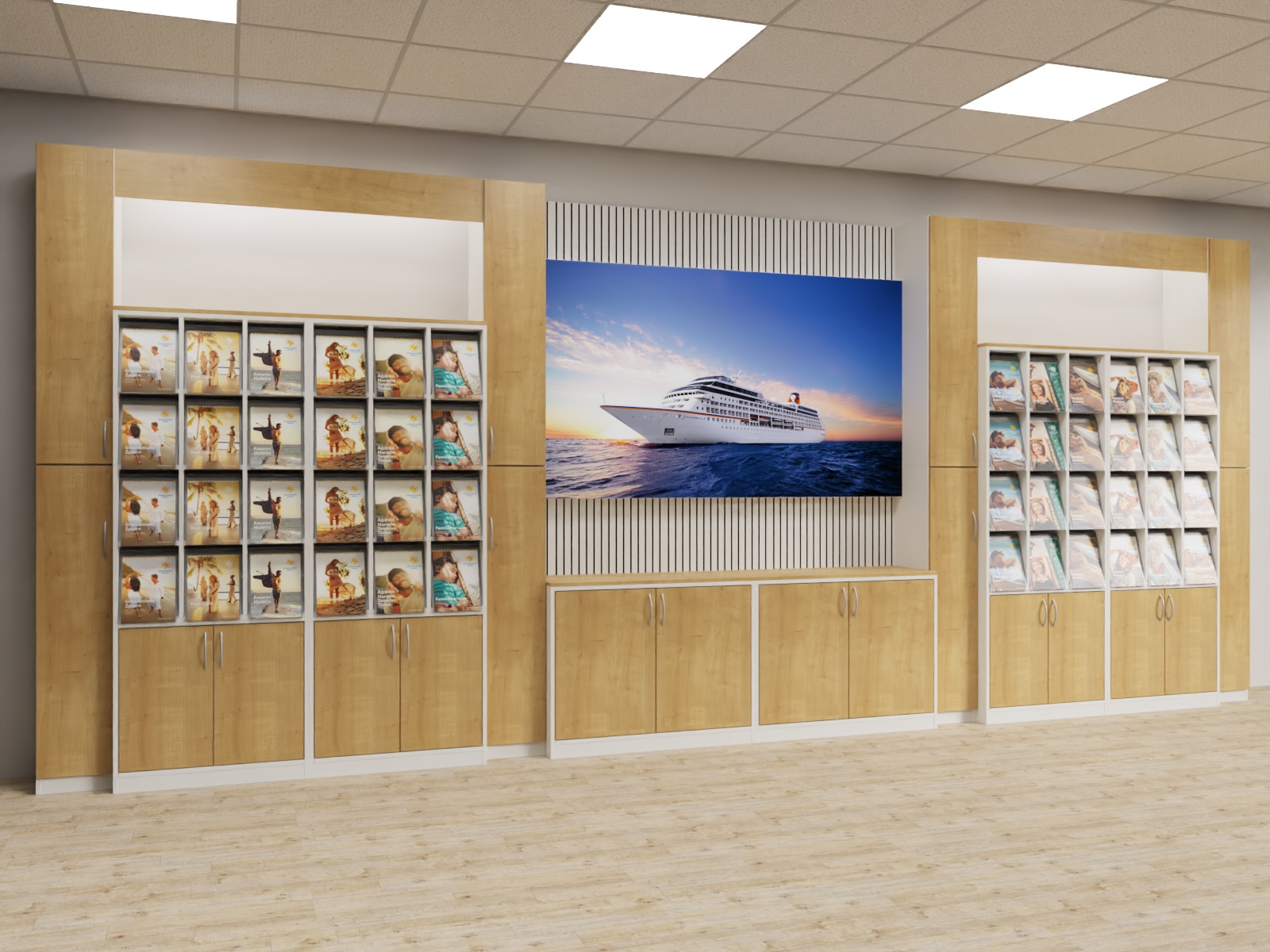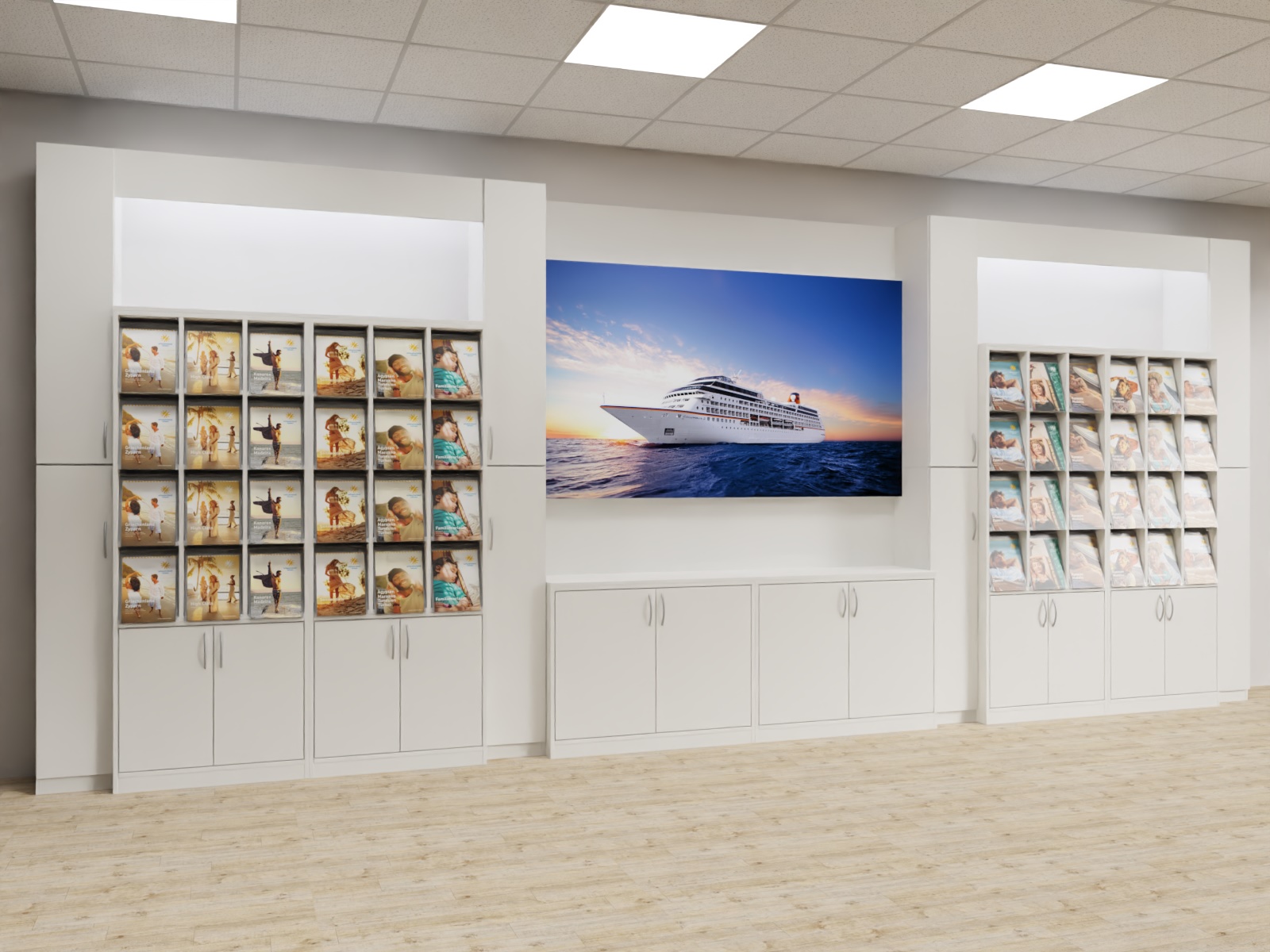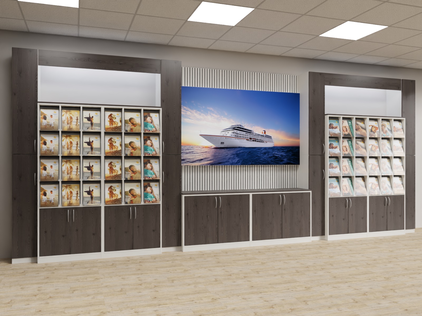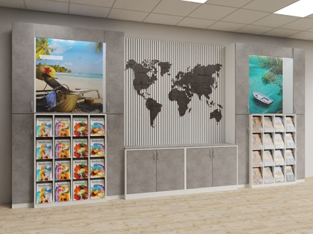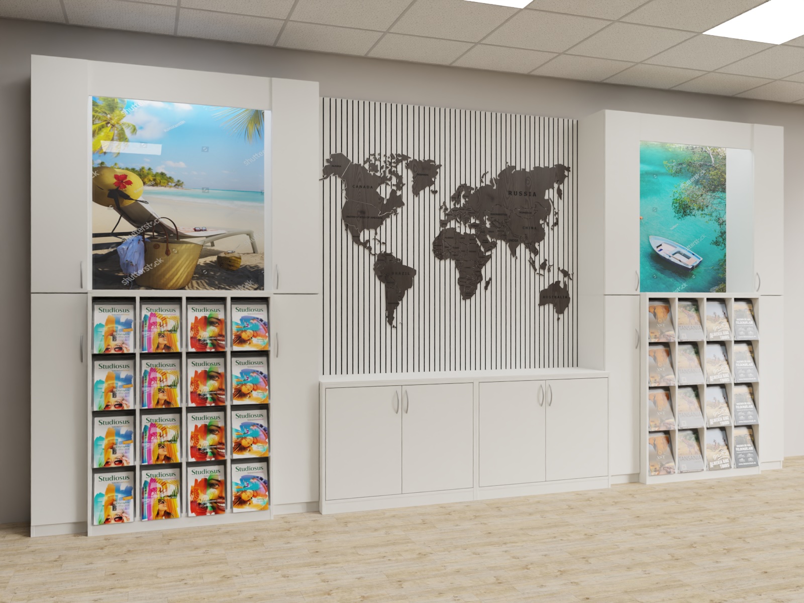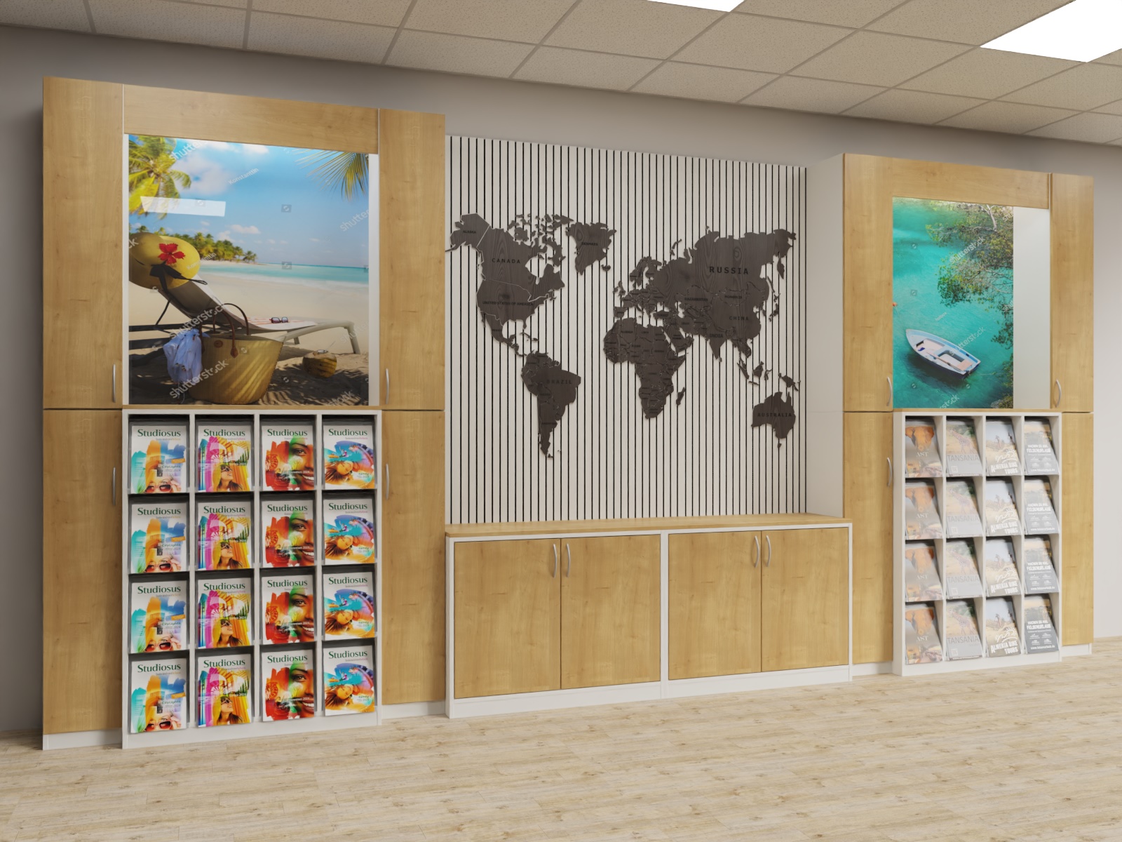 Kombination mit 3d Weltkarte aus Holz auf AkustikpaneeleKorpus: W980 Weiß Front: W980 Weiß