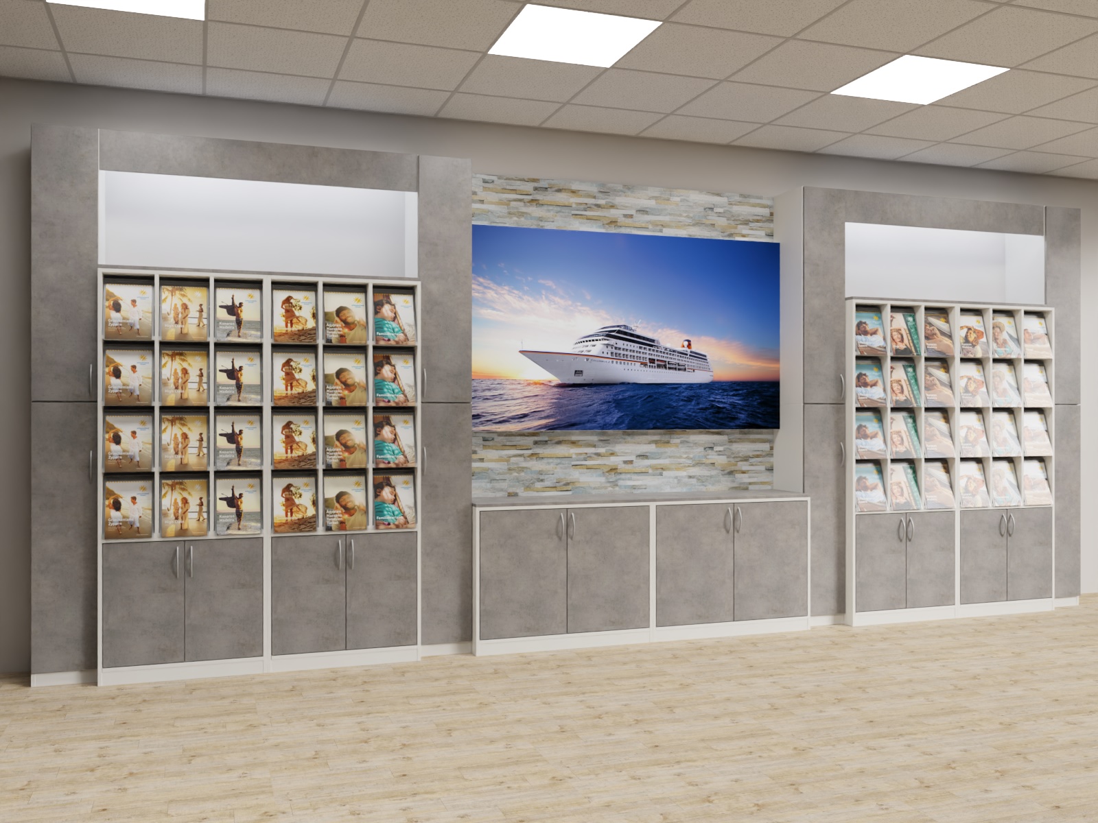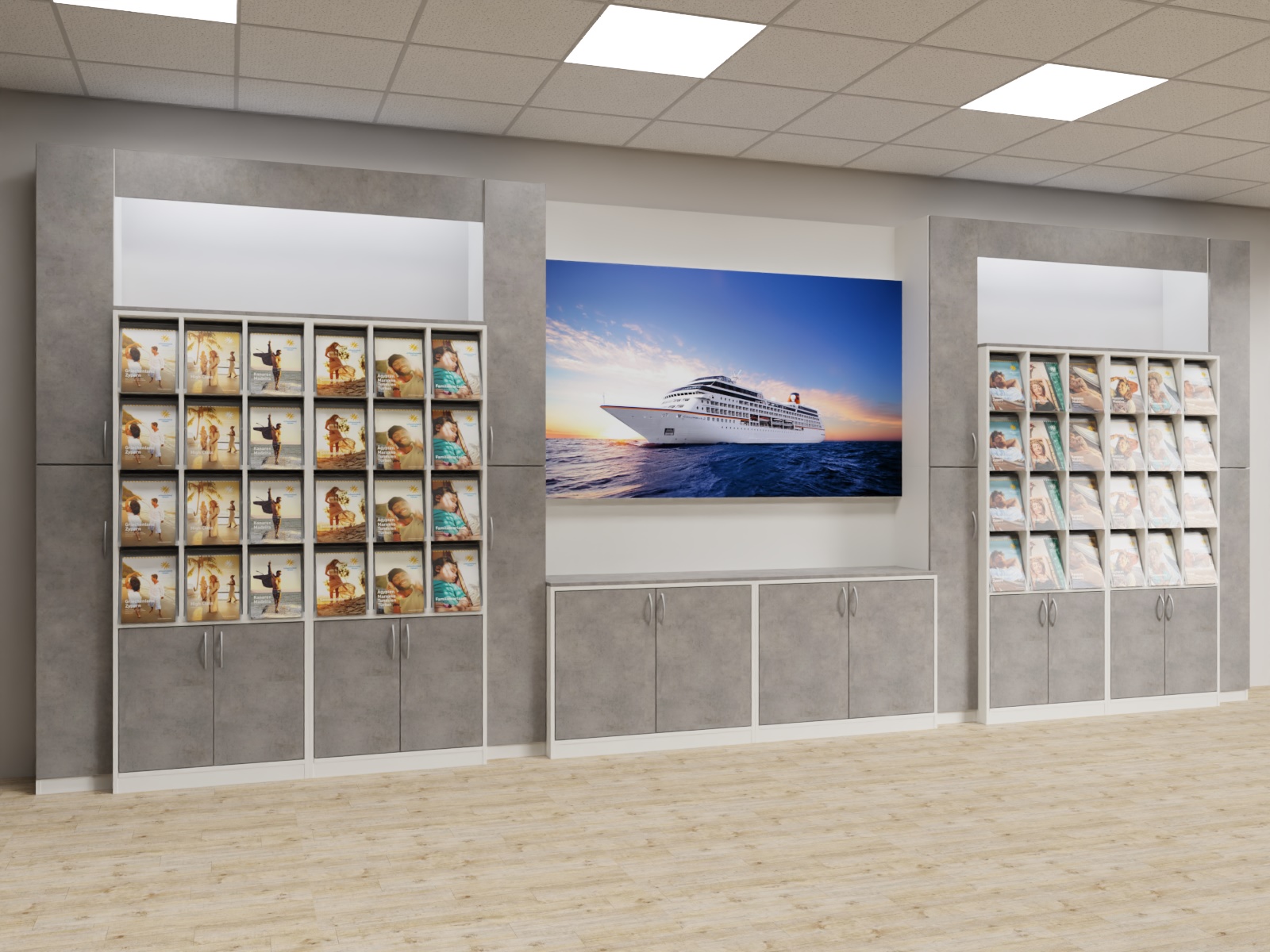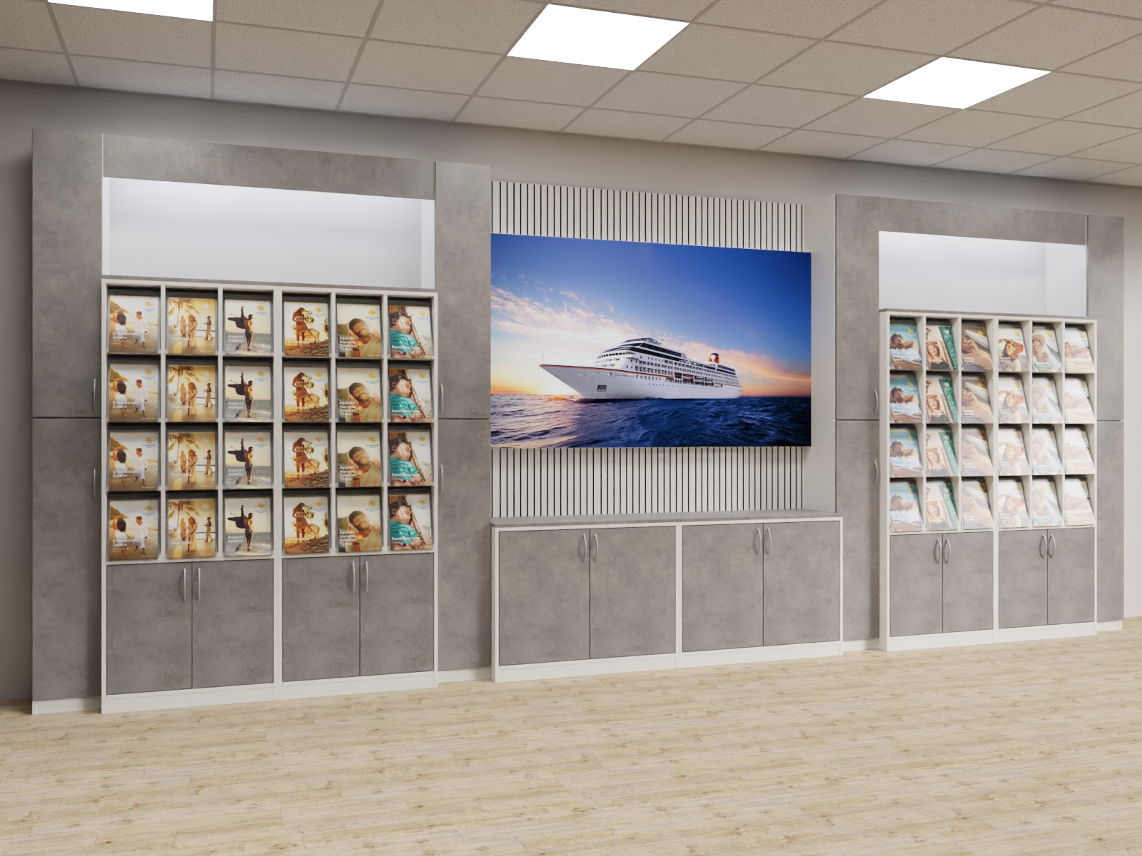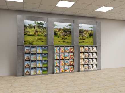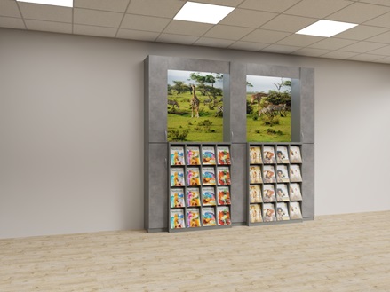 Kombination mit 3d Weltkarte aus Holz auf AkustikpaneeleKorpus: W980 Weiß Front: F186 Beton -