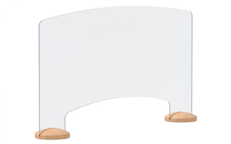 Acryltopper "Care", 500 | 600 mm Höhe, aus Acrylglas 5 mm, mit Durchreiche. Inkl. 2 Design-Holzfüße Buche natur lackiert, ø 140 x H 37 mm, mit Schlitz, 15 mm Bohrung und 5 aufgeklebten Gumminoppen an der Unterseite.