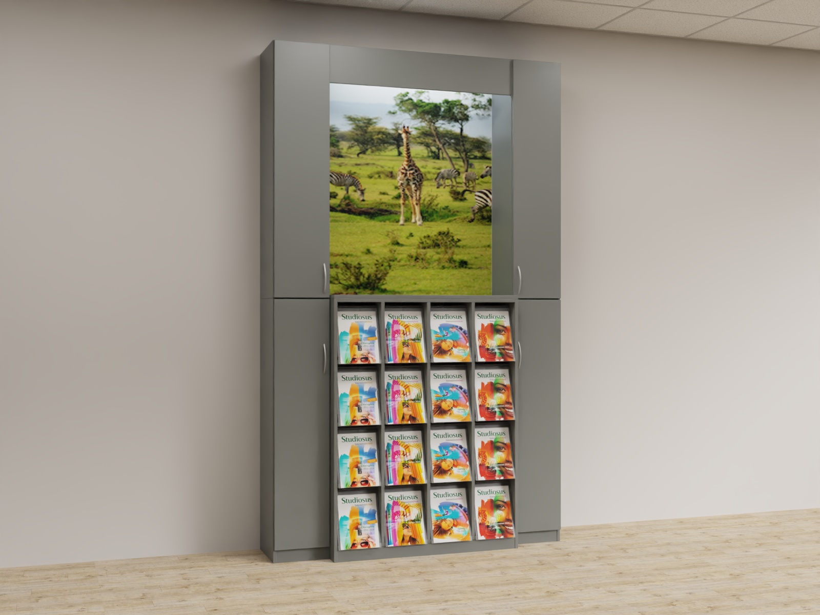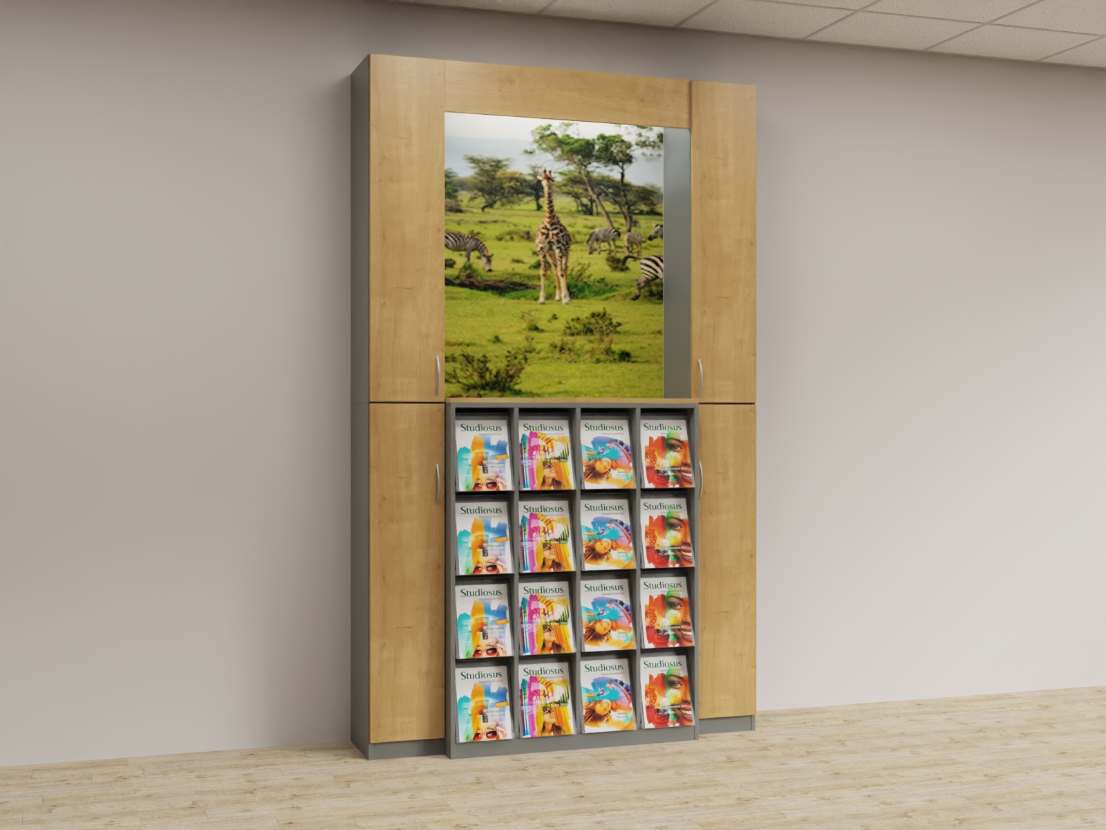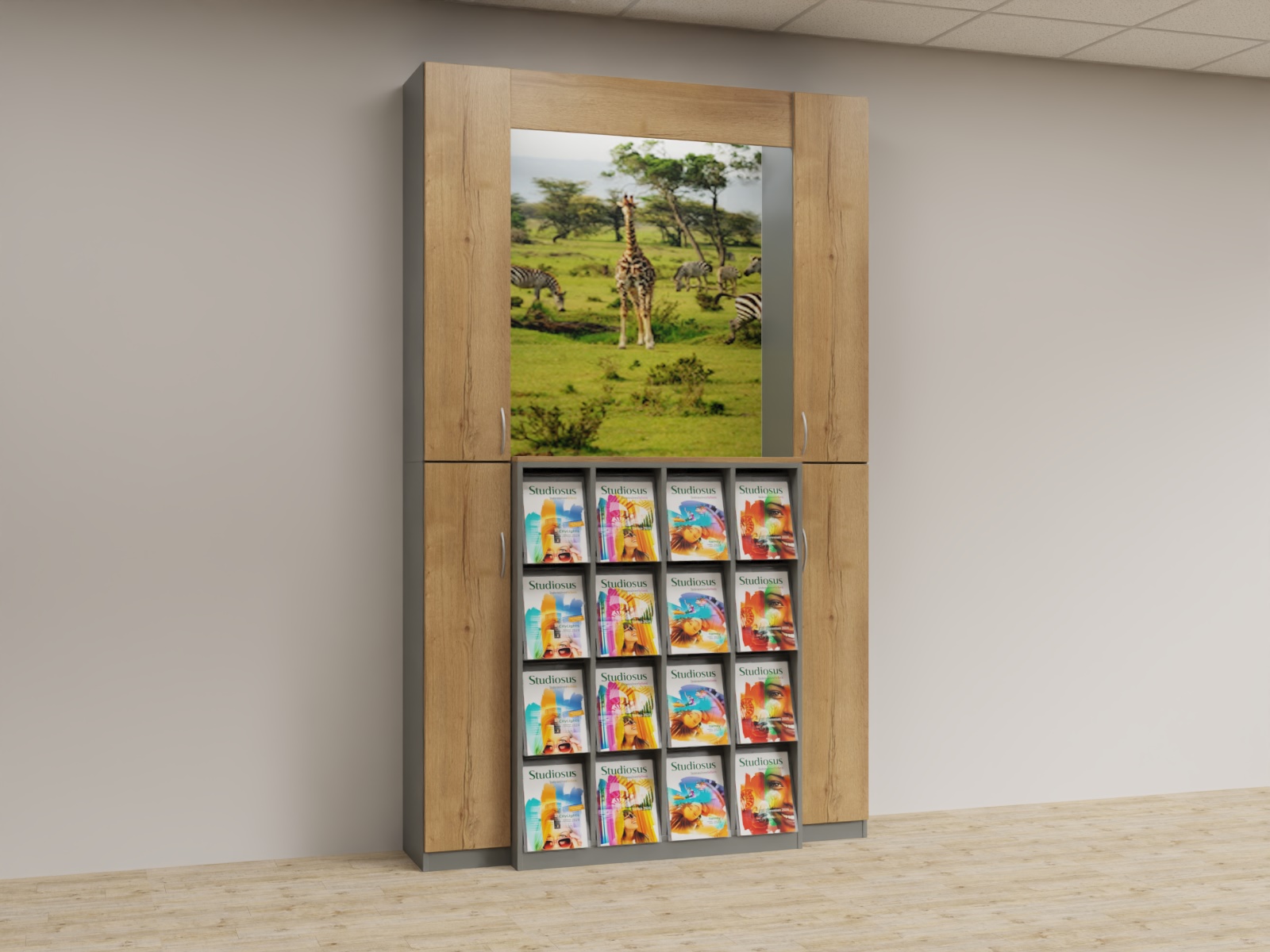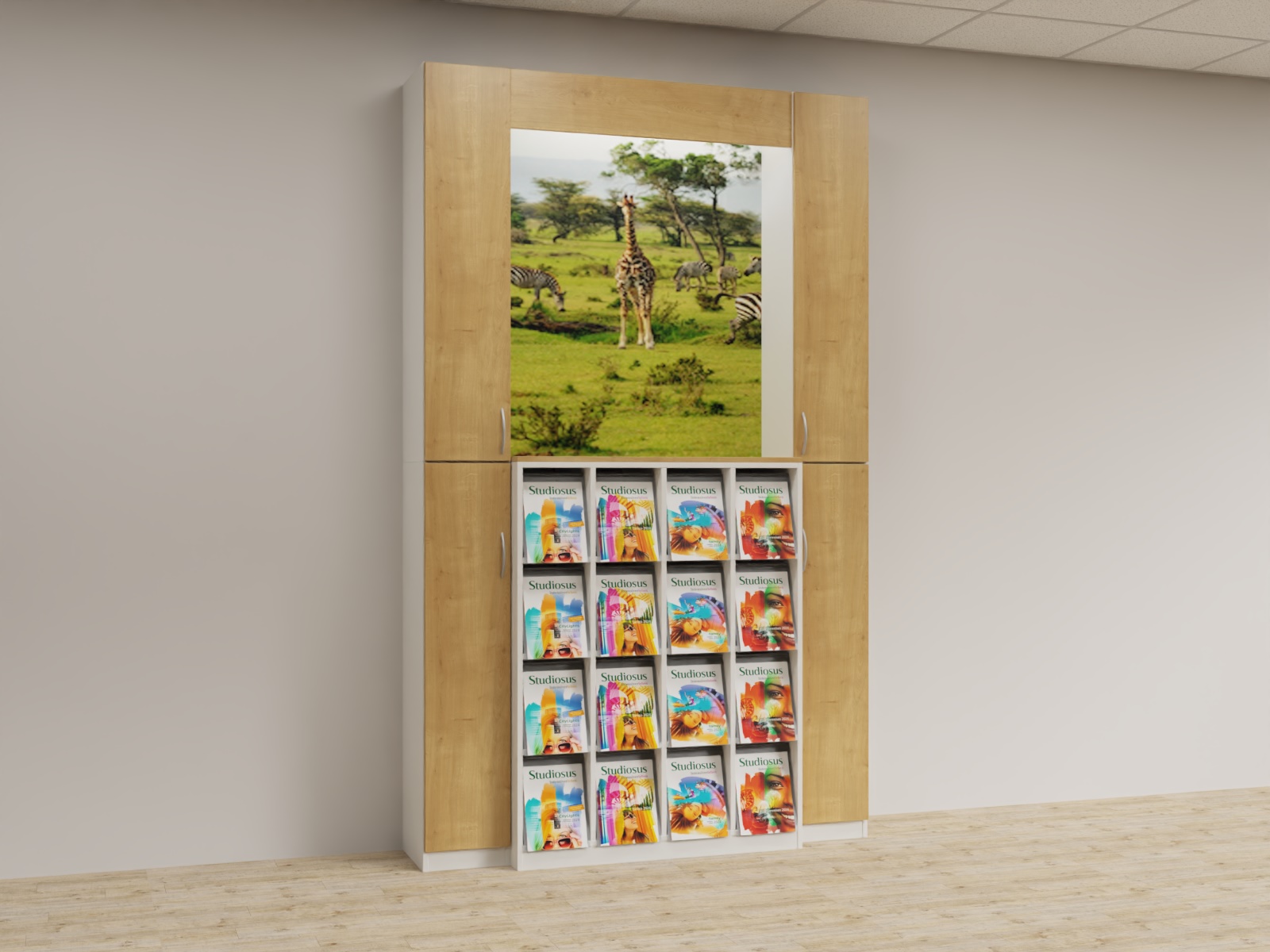 Variante 03 2x Funktionsäule,1x K4x4 Prospektschrank, Bildrückwände, Lichtwinkel