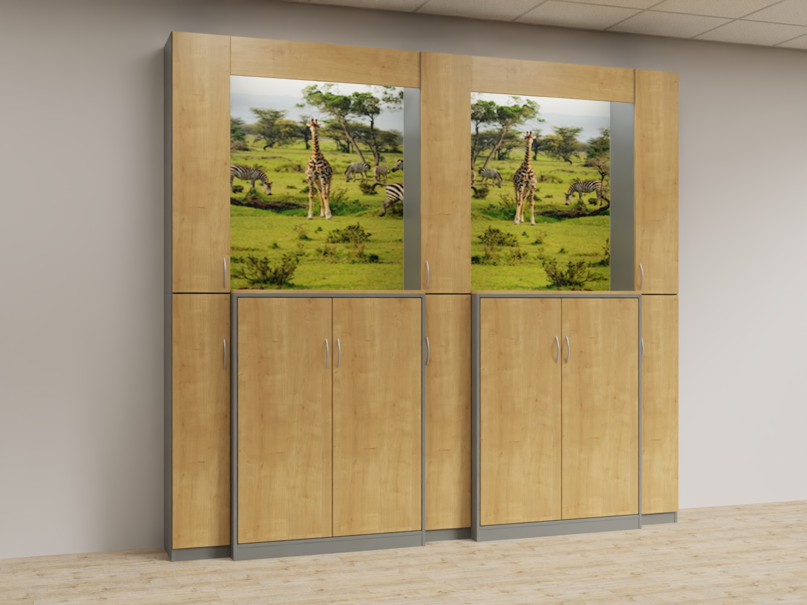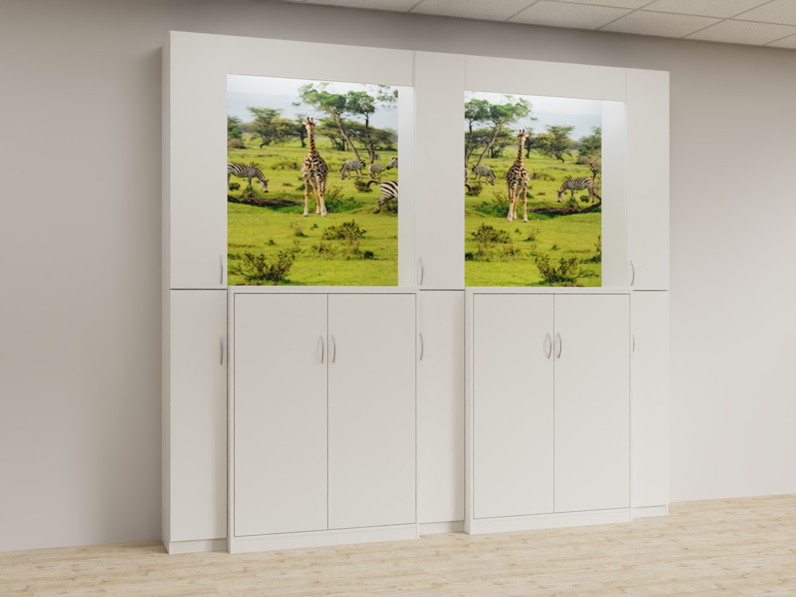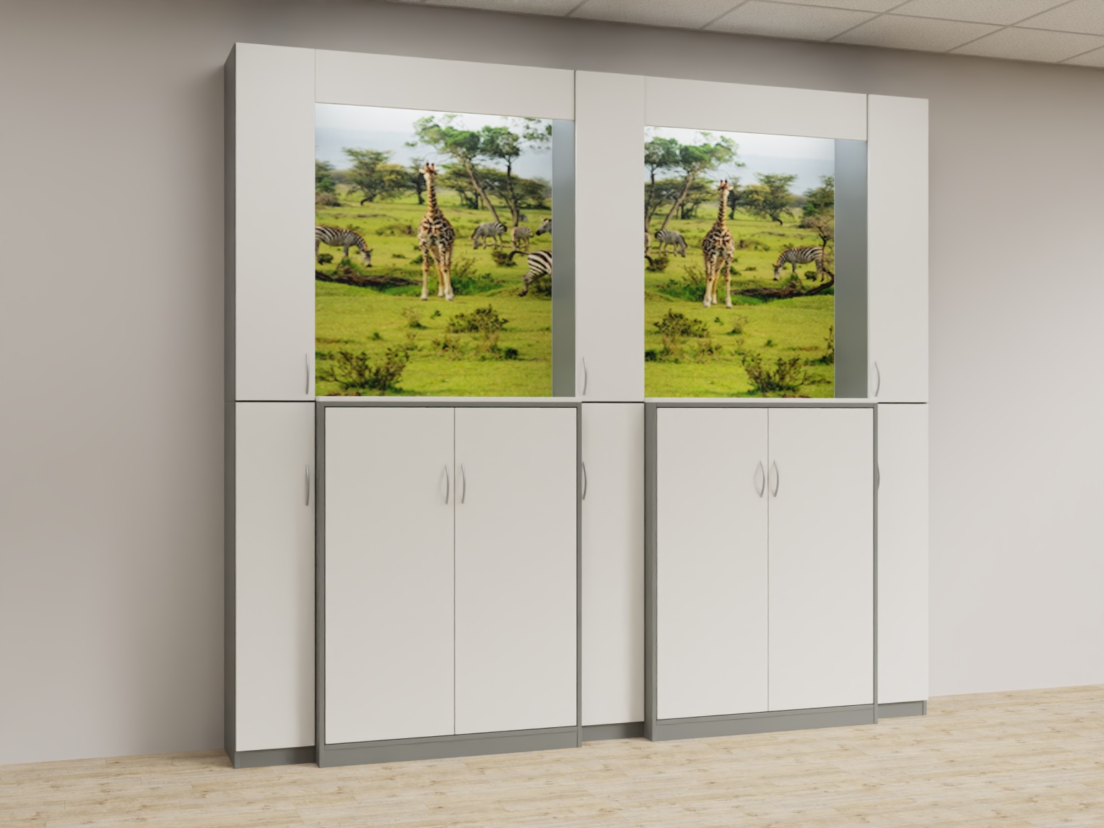 Variante 05 3x Funktionsäule,2x u4d_1364 Aktenschrank, Bildrückwände, Lichtwinkel