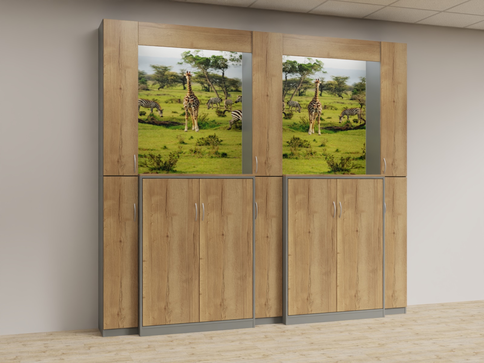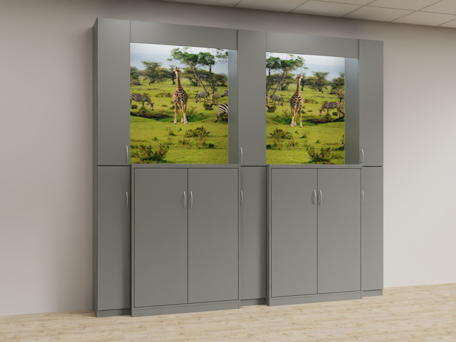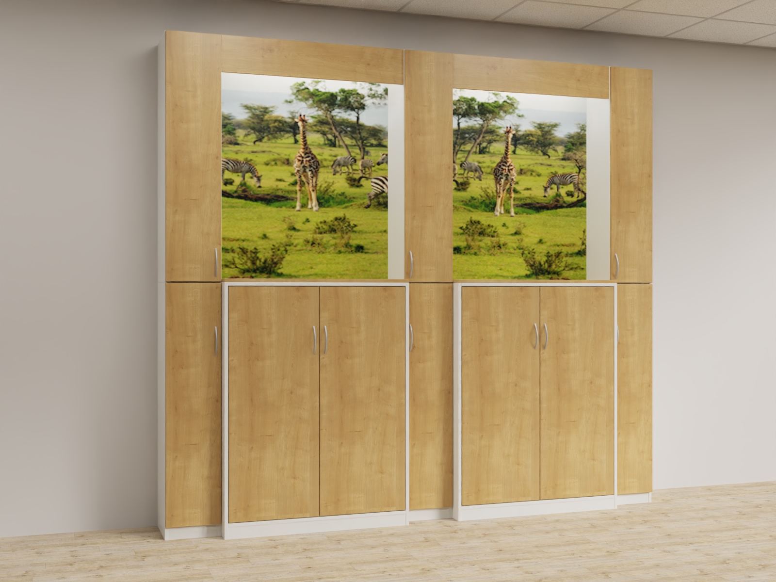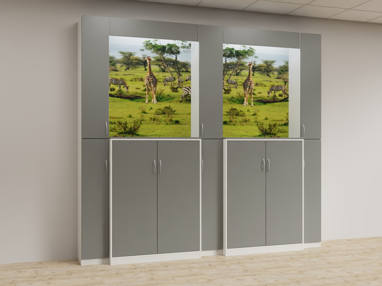 Variante 05 3x Funktionsäule,2x u4d_1364 Aktenschrank, Bildrückwände, Lichtwinkel
