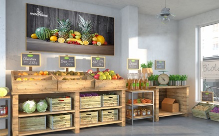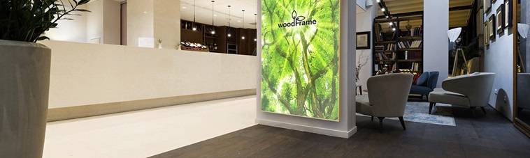 Wandflächen liegen im direkten Blickfeld Ihrer Kunden, Besucher und Mitarbeiter. Nutzen Sie diese Gestaltungsflächen und werten Sie diese mit den Mehrwertfunktionen des ALUFRAME-Systems auf. Mit fotorealistischem Druck und Modulen Ihrer Wahl.